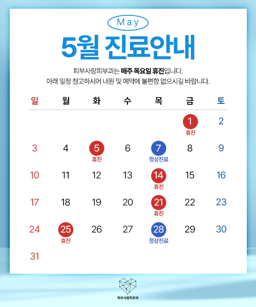 2026년 5월 진료일정 안내드립니다.