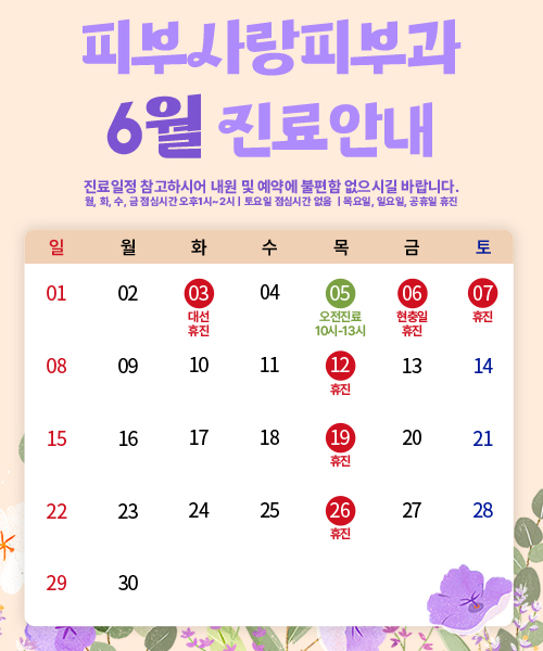 ※100%예약제 운영 ※ 토요일은 점심시간 없이 진료합니다. ※ 휴진·공휴일 홈페이지 별도 공지
