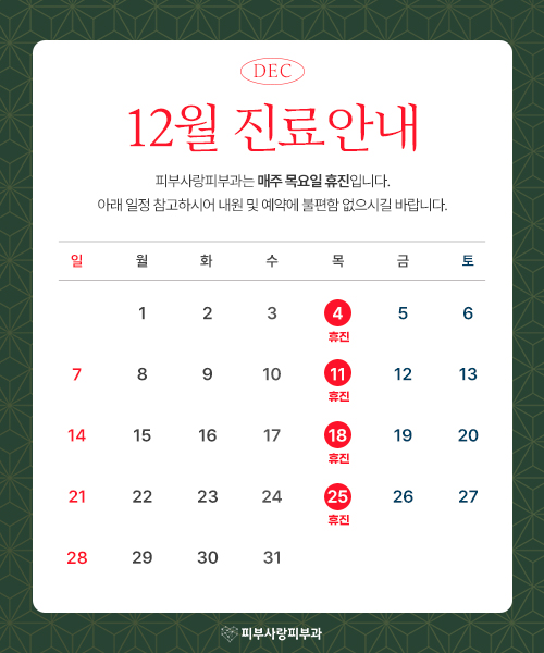 ※ 진료일정 참고하시어 내원 및 예약에 불편함 없으시길 바랍니다.