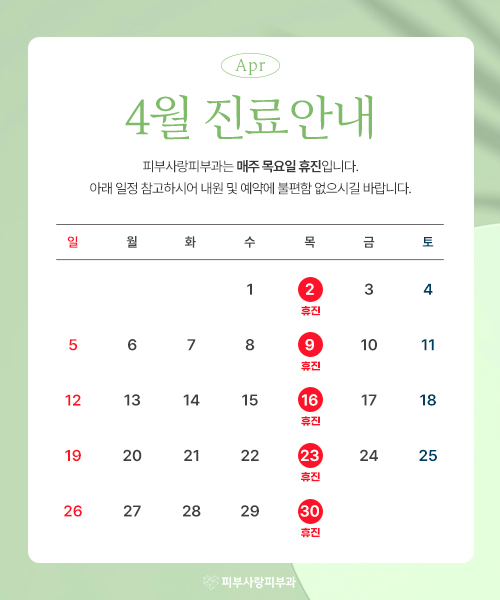 ※ 진료일정 참고하시어 내원 및 예약에 불편함 없으시길 바랍니다.